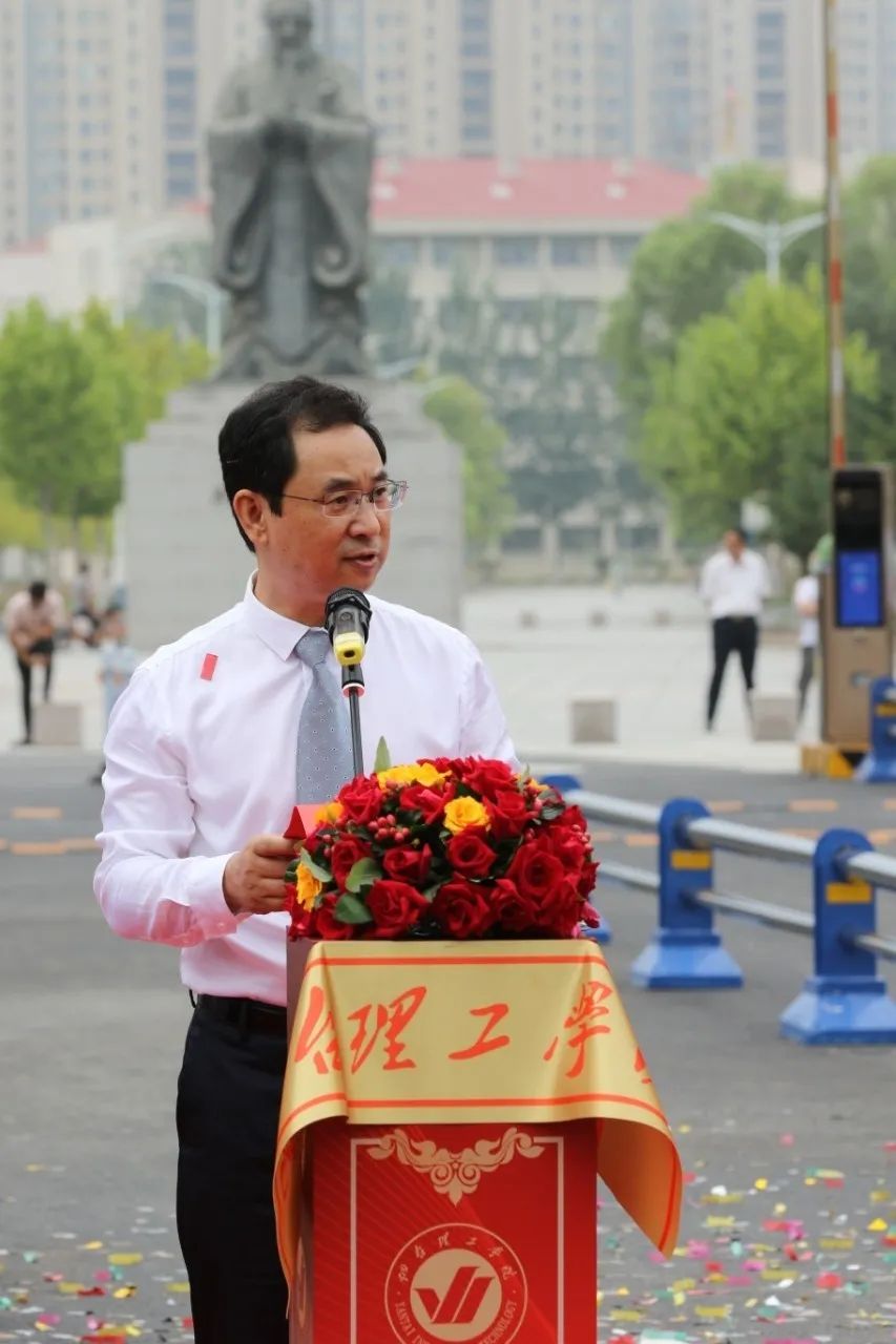 “我代表学校,向一直以来对学校给予大力支持的祥隆企业集团致以衷心感谢!对新校门的落成并启用表示热烈祝贺!对参与新校门项目建设并为之付出心血与汗水的全体同志表示诚挚谢意!”在新校门前,校长于光辉发表了情理交融、发人深思的讲话。讲话中,于校长阐述了新校门富有内涵的设计构想:两侧向外伸展寓意开放、包容的办学思想;立面层层书型寓意知识的海洋;水平基座寓意坚强支撑和扎实的办学基础;大门敞开双臂,意在欢迎海内外学子的到来。并深情祝愿每一位烟理工学子将在这里开启人生成功之门,成为“最好的自己”!
