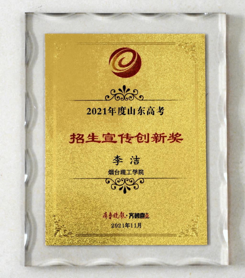 近日,由齐鲁晚报·齐鲁壹点举办的山东高考交流会暨智库年会和颁奖典礼在山东新闻大厦隆重举行。烟台理工学院再次荣获2021年度招生宣传“最具公信力高校”,这是我校连续三次获得该奖项。并首次获得山东高招会“最受欢迎本科高校”荣誉称号。我校校长于光辉教授被聘为教育应用与传播研究中心“智库特聘专家”,招生就业处处长李洁获评2021年度“招生宣传创新奖”。