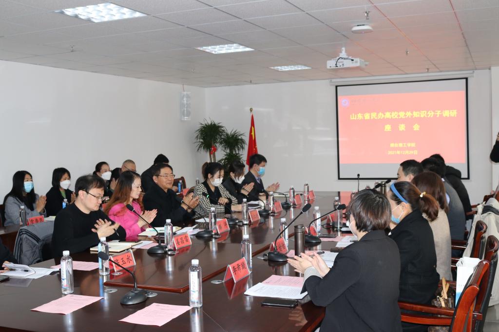 12月29日上午,我校于综合楼六楼会议室成功举办山东省民办院校党外知识分子思想政治状况调研座谈会。调研课题负责学校烟台大学党委统战部副部长段昕,我校党委副书记、副校长张仁杰、党委组织统战部副部长温少斐出席会议。烟台大学课题调研组成员、青岛滨海学院等省内10所民办院校统战部门负责人及党外知识分子代表与会。会议由烟台大学党委统战部副部长段昕主持。