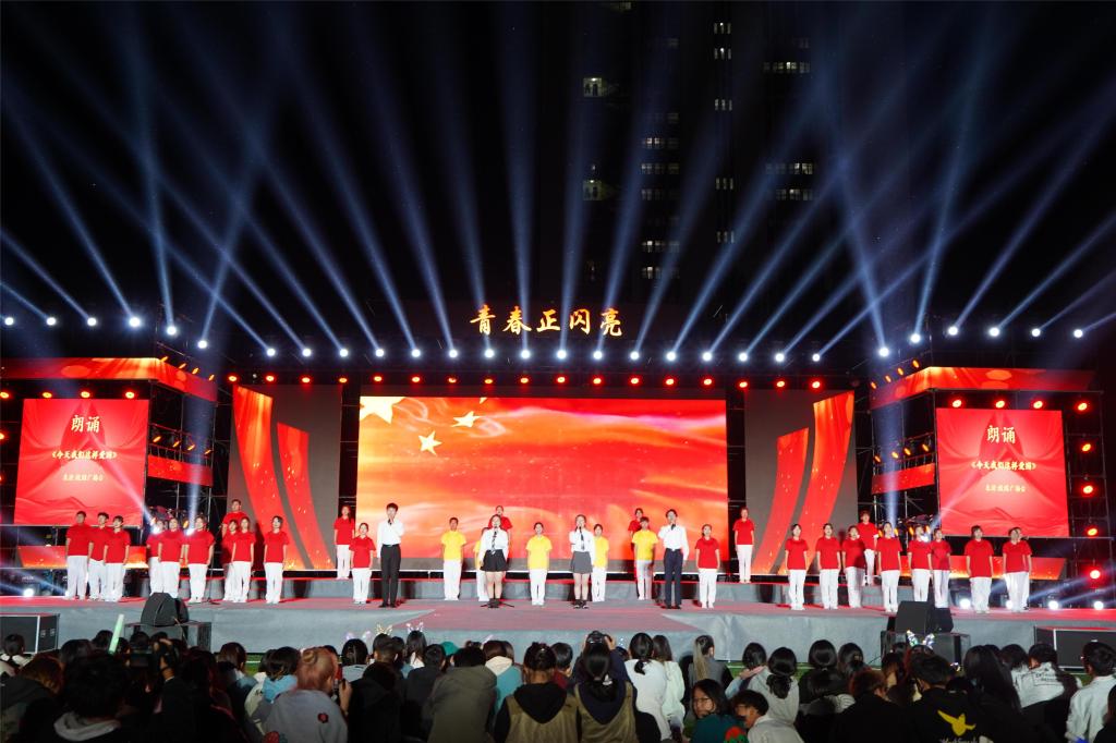 本次晚会以“青春正闪亮”为主题,晚会共分为上下两个篇章,上篇“乘风破浪——耀青年”唤起红色记忆,描摹青年力量;下篇“筑梦踏浪——畅青春”各具特色,展示现我校学子朝气蓬勃、锐意进取的精神风貌。伴着同学们的欢呼声,晚会在开场舞《最好的舞台》中拉开序幕。晚会通过舞蹈、朗诵、歌曲等多种形式,表达了对新生同学的美好祝愿。