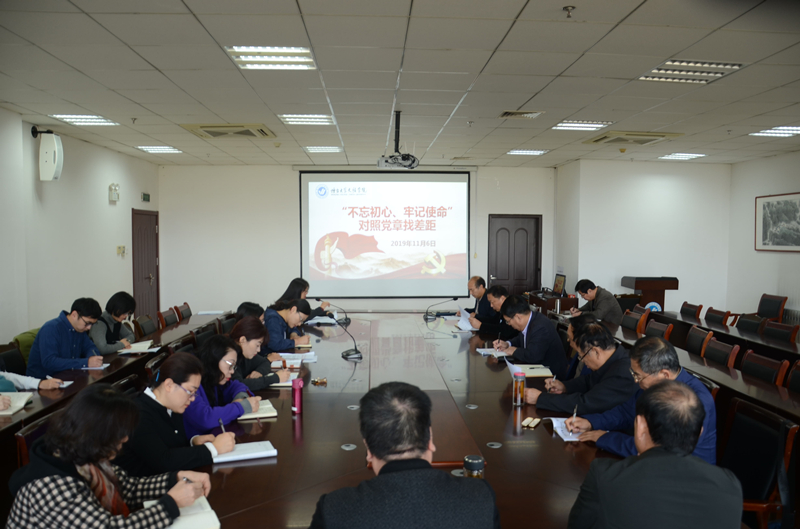 会上,党委副书记李荣梅首先传达了烟台大学“不忘初心、牢记使命”主题教育领导小组办公室文件《关于在“不忘初心、牢记使命”主题教育中对照党章党规找差距的通知》文件精神,通知中明确提出要围绕守初心、担使命,找差距、抓落实的总要求,组织党员领导干部在深入学习习近平总书记关于“不忘初心、牢记使命”重要论述的基础上,结合学习研讨,对照党章党规,重点对照党章、《关于新形势下党内政治生活的若干准则》、《中国共产党纪律处分条例》,以正视问题的自觉和刀刃向内的勇气,逐一对照、全面查找各种违背初心和使命的问题,真刀真枪解决问题,通过对照、提醒、扯袖子,不断增强党员领导干部党的意识、党员意识、纪律意识,不断提升政治境界、思想境界、道德境界。