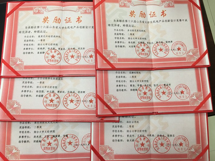 8月14日至15日, “临工杯”第十六届山东省大学生机电产品创新设计竞赛山东赛区选拔赛决赛在日照职业技术学院举行。我院选送的6个参赛作品进入现场总决赛,最终获得省一等奖2项,二等奖4项,其中,“蔬菜花卉幼苗载种机”作品获得“科明奖学金”。袁春静,郑晓梅两位老师被评为“优秀指导教师”