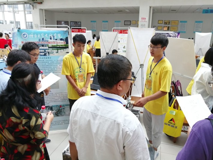 本次竞赛是由山东省教育厅主办,日照职业技术学院和山东高校机械工程教学协作组承办面向全省大学生的群众性科技创新活动。竞赛以“智慧融合、服务山东”为主题,以“竞赛”为载体,吸引了包括哈尔滨工业大学(威海)、山东大学、中国石油大学(华东)等92所高校参与,作品内容涉及机械、电子、车辆、化工、纺织、轻工、控制等专业,经过各高校的推选与评比,共有1471余项作品参加全省的决赛,最终推选出589项作品参加决赛第二阶段的展理论竞答、成果展示、现场答辩。