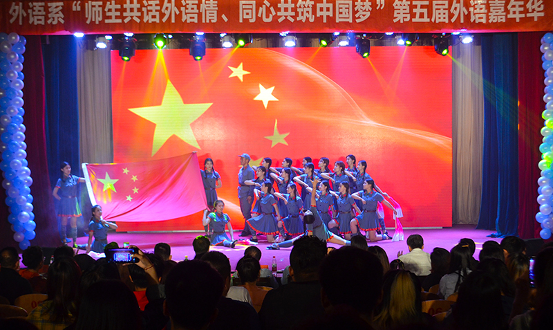 展外语风采,扬外语魅力。6月6日晚,外语系第五届“师生共话外语情 同心共筑中国梦”外语嘉年华在多功能厅举办。党委书记唐家弘、副书记李荣梅、院长助理尤敬法,学院管理总督导杜希成、工会主席史毅、学工部部长杜娟,外语系主任肖德法、党总支书记张廷国、副主任于巧丽以及外语系全体师生参加活动。