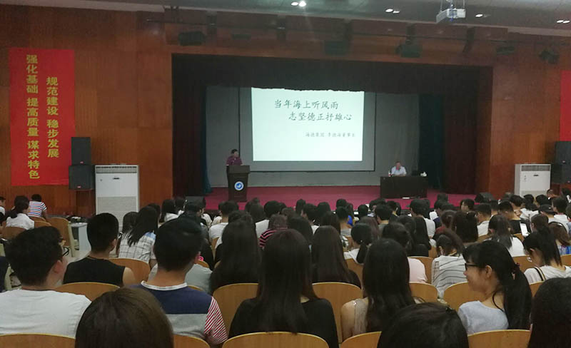 6月15日下午,学院就业创业部和管理系共同举办的“当年海上听风雨,志坚德正抒雄心”主题讲座于一教多功能厅举行。会议邀请海德集团董事长李德海担任主讲,院长助理杜希成,管理系主任华吉鹏、副主任王燕及各位辅导员出席讲座,管理系学生聆听讲座。
