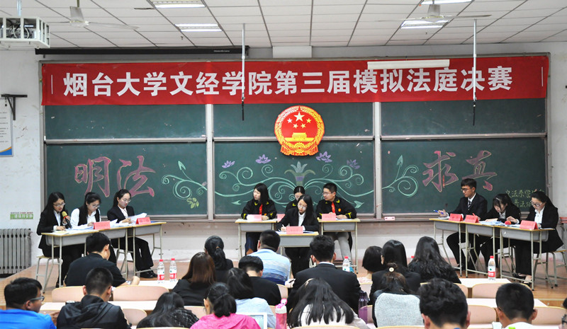 求真明法,观点交锋,直击庭审,巅峰对决。6月5日晚,学院第三届模拟法庭大赛决赛在二教115举行。文法系法学教研室主任吴淑霞,法学专业教师常超、耿雅慧、郑新飞,山东鑫士铭律师事务所律师王俊凯出席比赛,法学专业全体学生观看比赛。