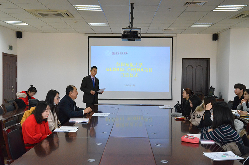随着学院声誉的不断提高和办学实力的不断增强,我院更加重视对外交流与合作,中韩交流更加密切,留学生的访学活动更加频繁。2017年伊始,我院又迎来了韩国延世大学17名留学生短期访学活动。1月9日上午,延世大学GLOBAL CHINA项目开班仪式在六楼会议室举行。副院长刘孔庆、对外交流与合作部部长韩少明、延世大学教授姜志恩参加开班仪式。