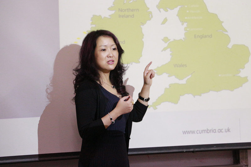 会谈结束后,王懿博士在二教301举办专题讲座,向文经学子介绍了坎布里亚大学的一学期交流项目、专升本项目、3+1双学位项目以及研究生项目,帮助同学们做好留学规划。