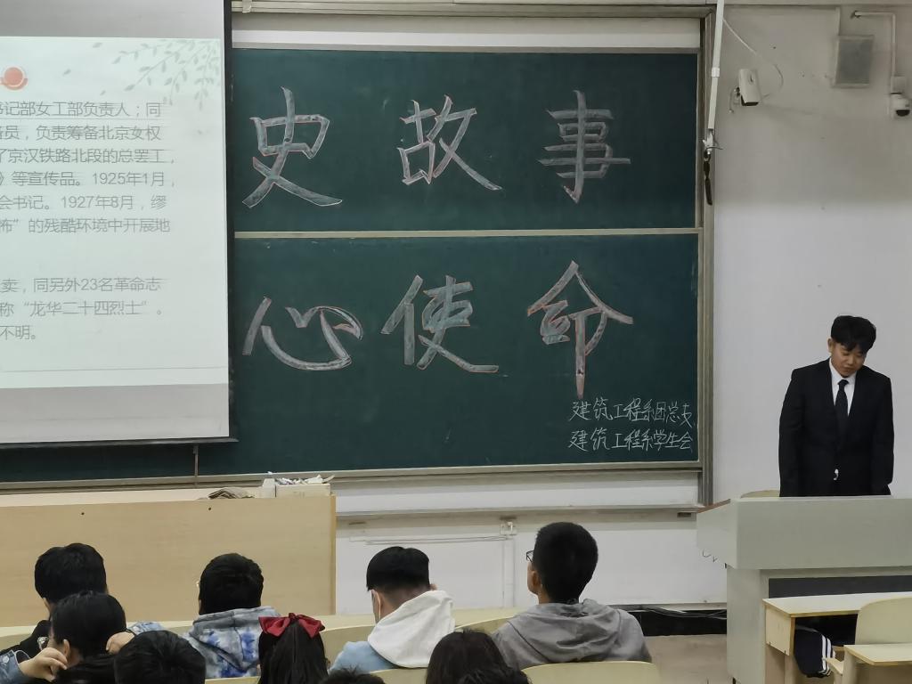 宣讲中,建筑工程团系总支书记臧延云老师以革命英雄故事拉来了宣讲的序幕,指出中华民族是英雄辈出的民族,新时代是成就英雄的时代。大力弘扬英雄精神,需要每一个人的参与,需要每一名青年学子践行传承。今天的我们我们传承英雄精神,需要坚定信仰、需要锤炼本领、需要接续奋斗。