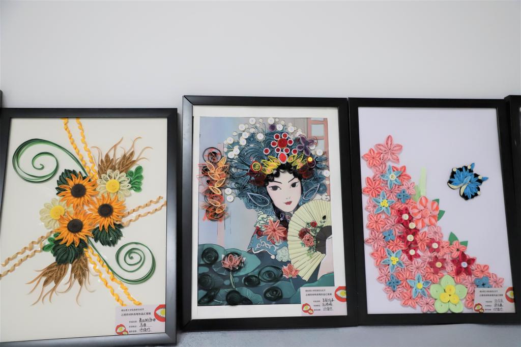 本次衍生汇报展中,展出了各色各样充满创新气息的艺术作品。一进展厅映入眼帘的是宣传海报,展厅两侧陈列着各个班级借用纸条、树叶、水果等材料拼贴而成的创新形式艺术作品。同学们将现代生活、艺术与美融为一体,构成艺术和审美的对象,以前所未有的视角带来一场极其丰富的视觉盛宴和美的感动,让观者感受他们迥异风格下对艺术教育坚守的赤子之心。