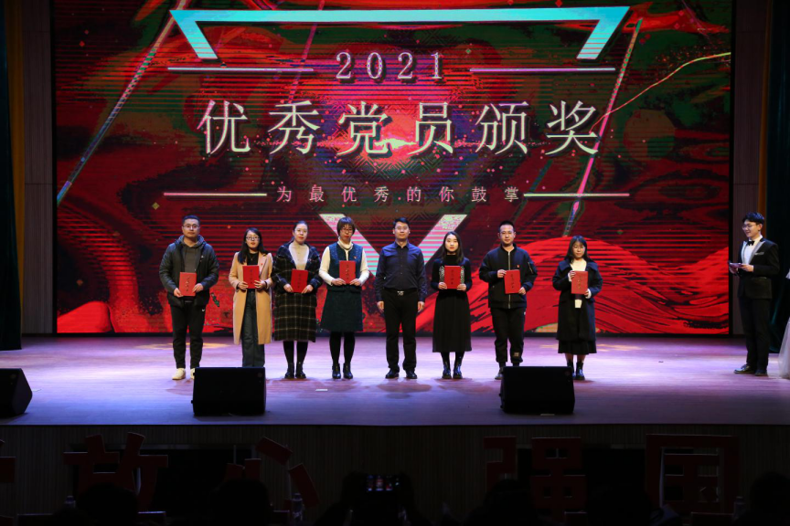 晚会分为“峥嵘百年史,砥砺中国行”“生而逢盛世,青年当有为”“奋进新时代,筑梦新征程”三个篇章。通过红歌联唱,感受老一代革命人的甘苦与共,学习百年辉煌党史,汲取奋进磅礴力量,以对党绝对忠诚的政治品格和更加昂扬的姿态奋力开创我院新局面!武术表演展示我院学子刚猛有力、勇往直前豪情壮志。小品《时间都去哪了》以朋友圈点赞、微博热搜和“拒绝emo,从我做起”等生活多彩瞬间,打动了在场的观众们,以生动幽默的方式告诉同学们要珍惜时间,争做不负韶华的追梦人。舞蹈《ICONS》体现青春的绚烂多彩,诠释着生命的无限可能。说唱《华夏》和朗诵《青春的礼赞》诠释着我们青春向党的信心和决心。合唱《向往》展现着我院师生意气风发的精神风貌。活动还设置颁奖环节,由校、院领导为优秀党务工作者、优秀党员、爱岗敬业教师、优秀行政管理人员进行颁奖,激励全体党员干部和教职员工积极工作,奋发有为。