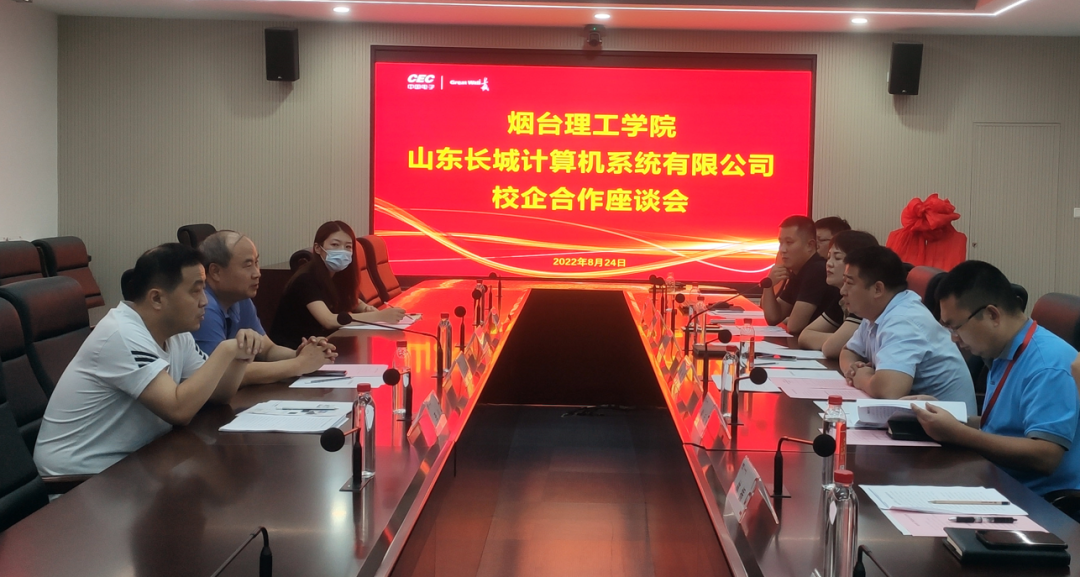 8月24日下午,校领导带队与人工智能学院领导、老师一行5人到访烟台高新区山东长城计算机系统有限公司,洽谈校企合作模式,并举行“就业实习基地”挂牌仪式。山东长城执行董事黄剑及公司核心部门人员参加了本次活动。