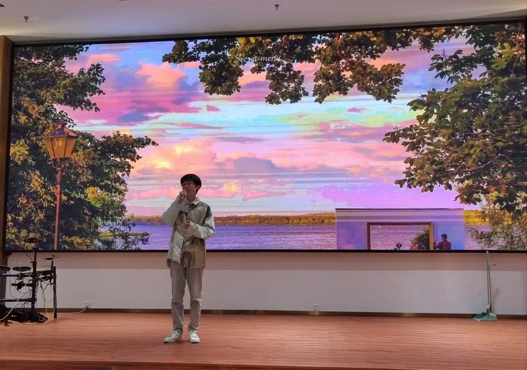 在烟理工美丽的校园景色和优美的配乐声中,孩子们借由诗歌表达了对师友、对亲朋的满满谢意。紧随其后的表演集合了配音、话剧、对唱、改编情景剧、组诗朗诵、小合唱、乐队表演等多种表现形式,《刘华强买瓜》以新颖的切入点和有趣的情节设计引得现场观众阵阵掌声和欢笑;《灰姑娘》的角色反串更是令人捧腹,赢得满堂喝彩;《西游记金角银角片段》表演生动传神,惟妙惟肖;马扬、刘瑛《So wie ich》的德语饶舌堪称技艺精湛;汤凌然的独唱歌曲,德语版《Perfect》更是绕梁三日,字字深情,现场观众纷纷情不自禁得打开手机灯光为他营造浪漫温馨的氛围。除了异彩纷呈的表演,大赛还为观众准备了抽奖环节,更增加了本次比赛的互动性和观赏性。大赛由一首外语学院王钰剑同学友情献唱的《my love》画上圆满的句号。