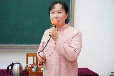 此次讲座特邀一级茶艺师、一级评茶师、一级制茶师,现任烟台茶艺文化研究会会长,烟台响水湾茶艺培训学校校长于玉兰主讲。于玉兰老师介绍了茶艺与茶道的相关知识。