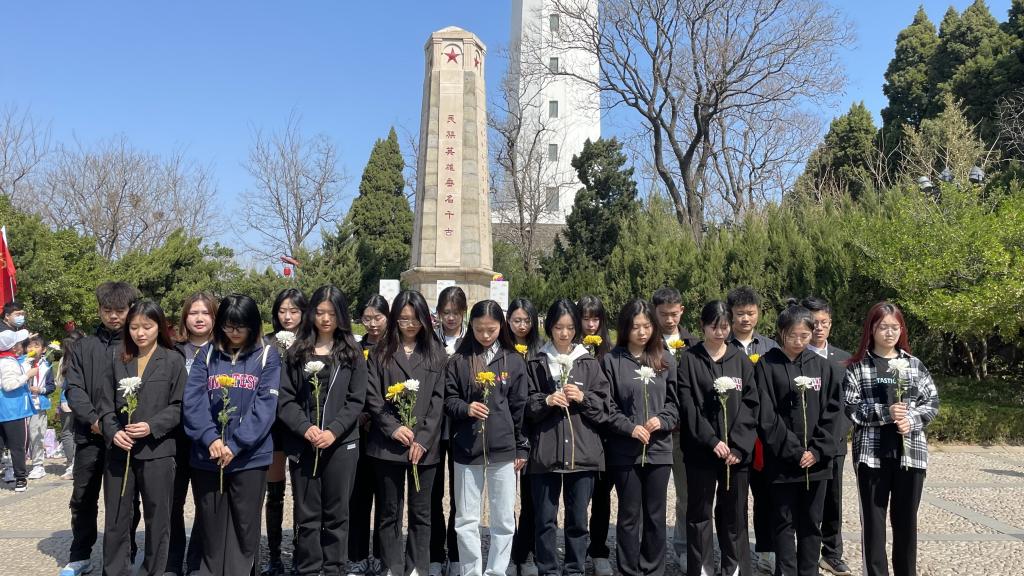清明节来临之际,为缅怀革命先烈,弘扬爱国和革命精神,文法学院青马工程基础班学员赴烟台山公园抗日烈士纪念碑开展清明祭扫活动。