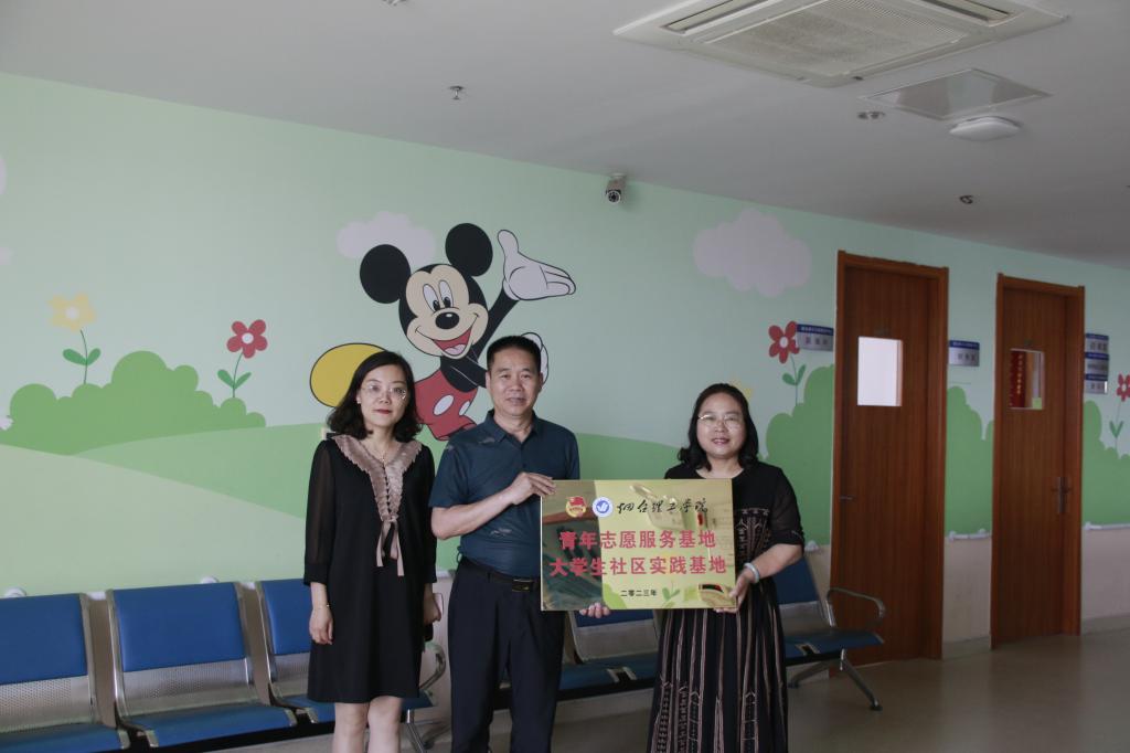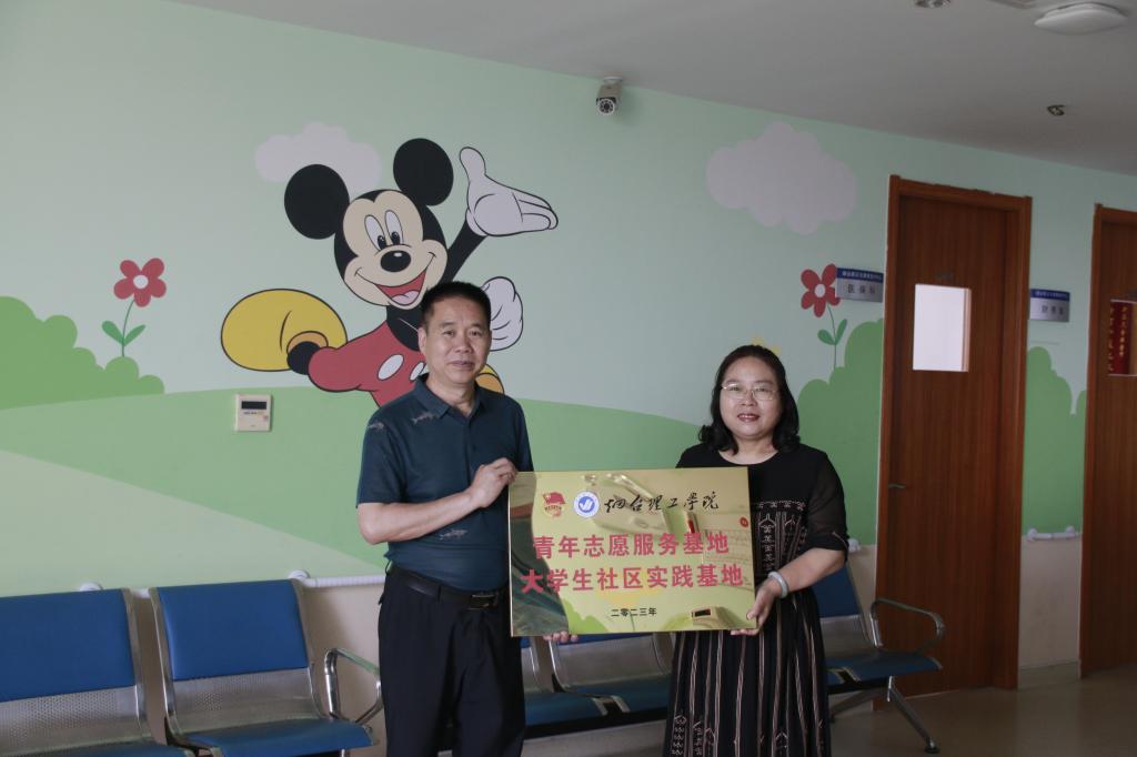 为弘扬志愿风采,传递向善力量,近日,信息工程学院党总支副书记王明印、团总支书记祝箐赴新正元康复医疗中心举办“青年志愿服务基地”挂牌仪式。