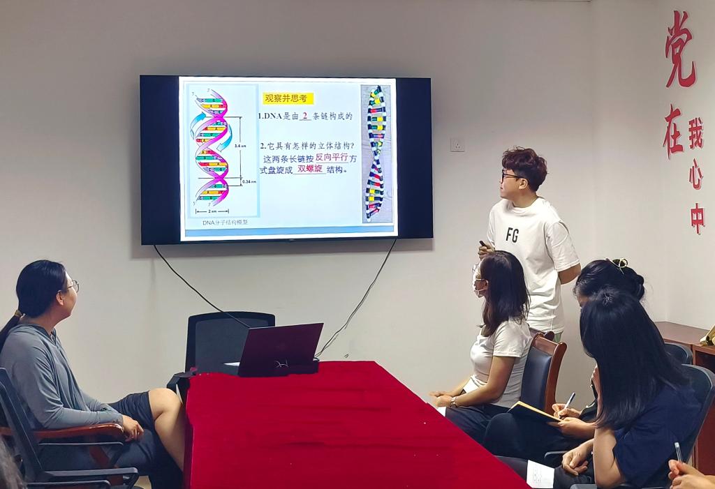 此次比赛内容包括说课和模拟授课两个环节。参加比赛的七名选手都以积极的态度全身心投入,用饱满的热情进行课堂教学,以富有感染力的语言进行讲解。选手们分别从“流血的组织—血液”“病毒的讲解”“动物体的结构层次”等课题入手,围绕教学目标,在十分钟内,对知识点进行了深度解析,通过模拟课堂教学,呈现了一个个生动的教学片段,选手们讲解的课程巧妙举例、巧设场景、灵活鲜动。紧接着,评委老师秉承公平、公开、公正、透明的原则,从授课思路、教学方法、语言表达、仪表仪态等方面进行公正严谨的评分和指导。