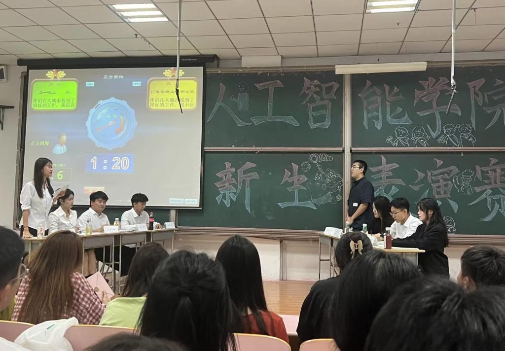 9月12日晚,人工智能学院新生辩论表演赛在二教115拉开序幕。本次辩论赛旨在培养大家的思辨能力和语言表达能力,进一步活跃校园气氛,丰富同学们的课余生活。