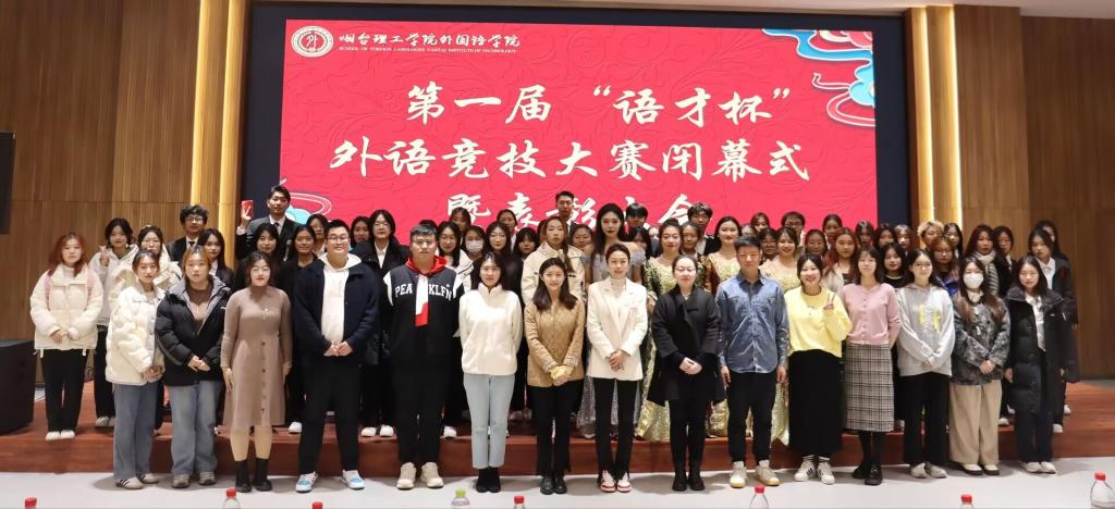 12月7日,外国语学院于综合楼六楼报告厅举办第一届“语才杯”外语竞技大赛闭幕式暨表彰大会。外国语学院党总支副书记赵蓓,英语系副主任徐家南,团总支书记董瀚文,辅导员、班主任以及23级全体新生出席本次活动。